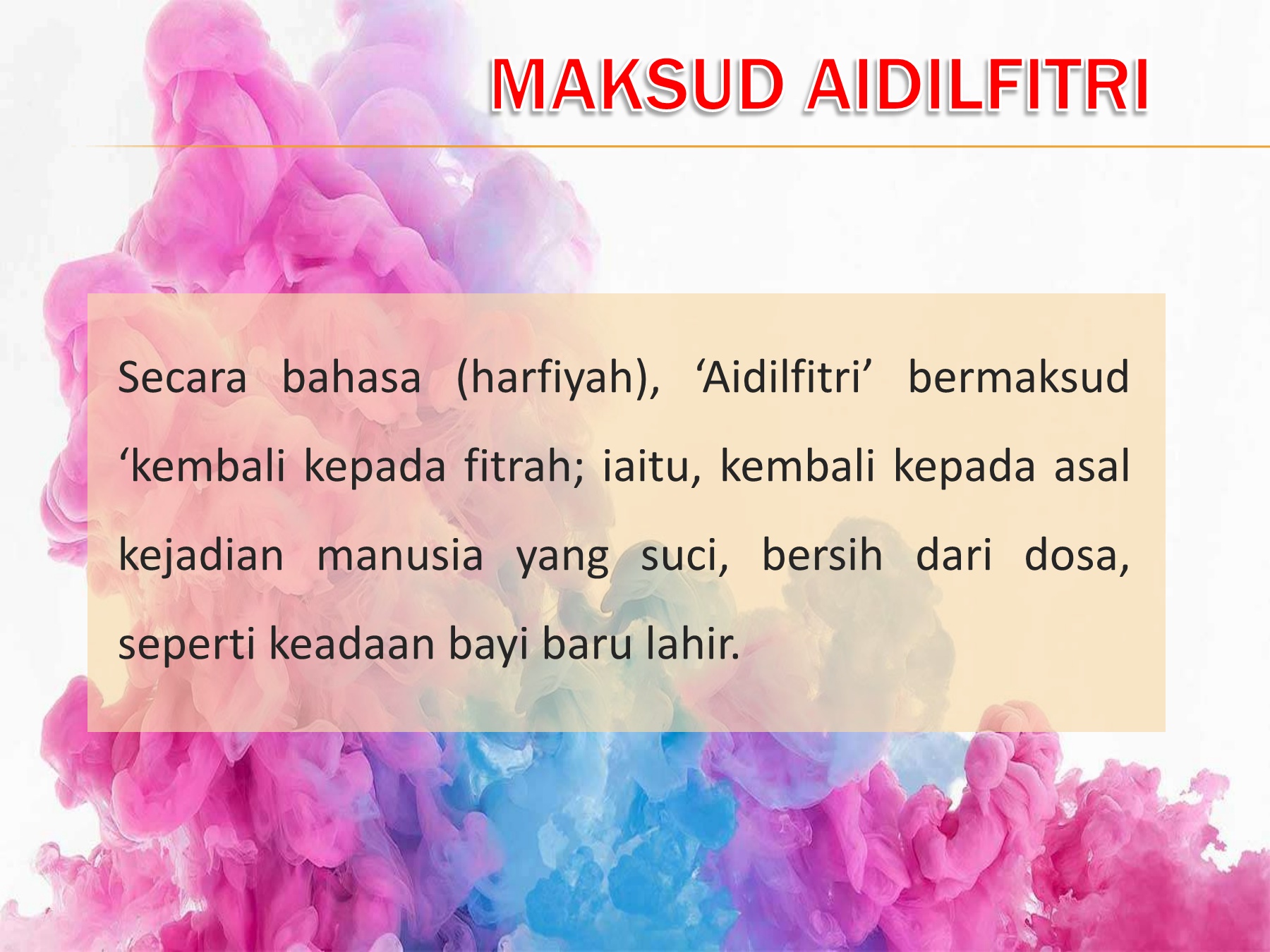 Kita boleh cari definisi Aidilfitri di buku-buku dan kitab-kitab tapi pada peringkat peribadi pengertian Aidilfitri setiap kita adalah berbeza. Hari Raya Aidilfitri Bahasa Arab.